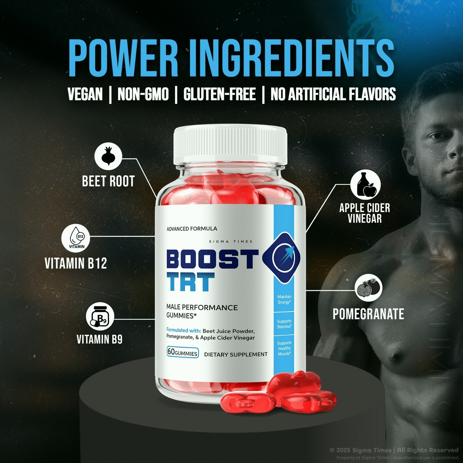 (1Pack) Boost TRT Male Gummies – Performance Support Supplement for Men – 60 Count