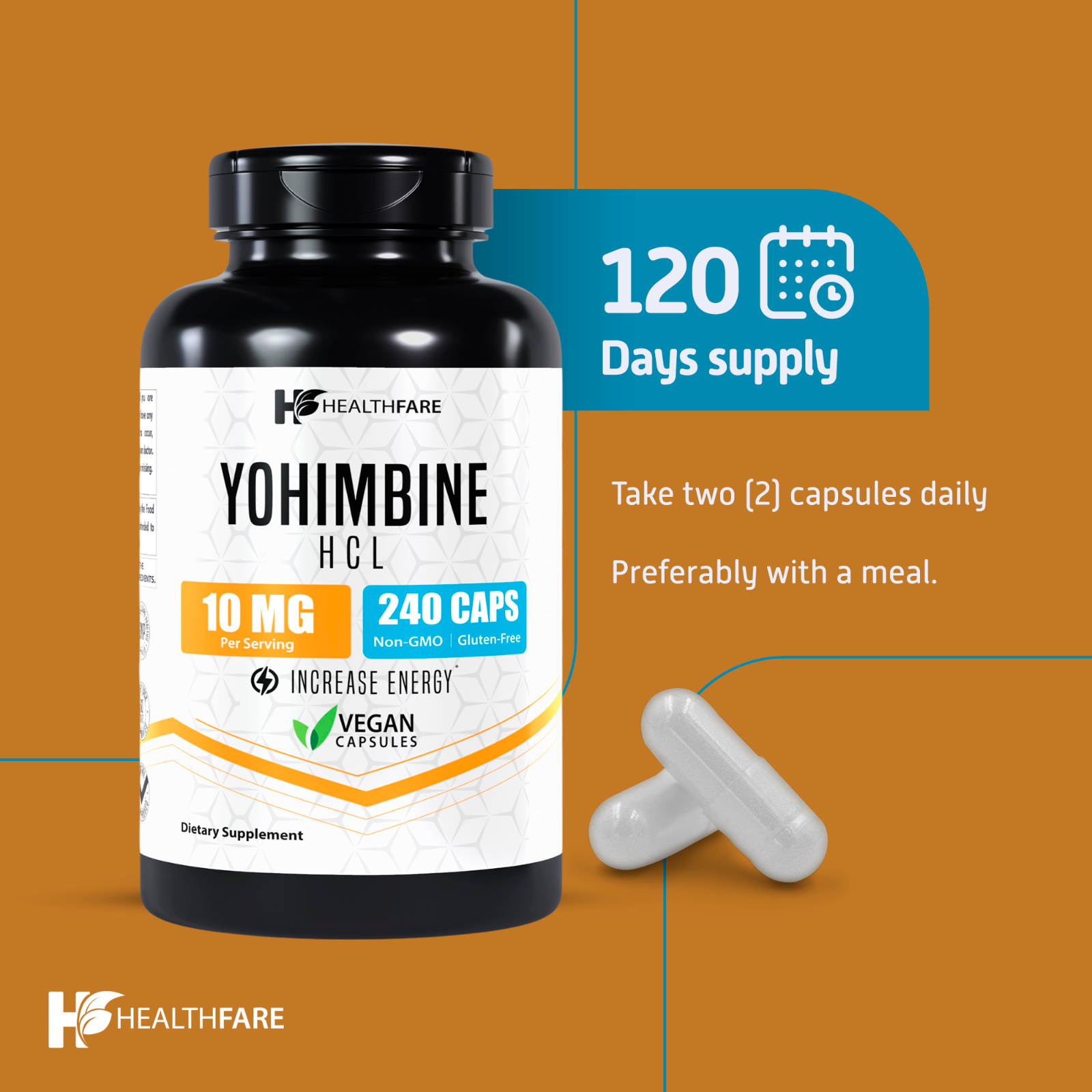 (1Pack) Healthfare Yohimbine HCL 10mg – 240 Capsules | Max Potency Energy & Performance Support Supplement
